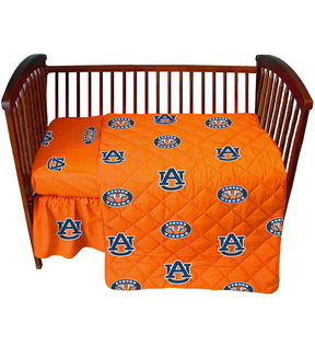 The officially NCAA licensed Auburn baby crib set from College Covers is a perfect addition for any fan's nursery, whether for a baby girl or boy. This 4-piece set includes a reversible comforter, two fitted sheets, and a bed skirt, all crafted to bring team spirit to your little one's room.