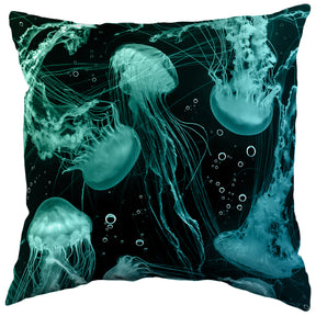 Blue green jellyfish decorative throw pillow. Available in two sizes.