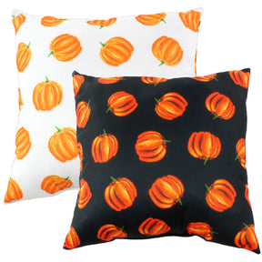 It's a pumpkin patch, but on a pillow! Black front, white reverse with orange pumpkins placed all over. Reversible 16" decorative pillow is a great Halloween or fall décor piece. Made in the USA.