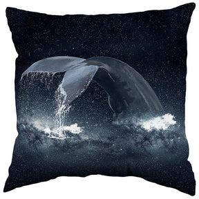 Whale jumping in the stars throw pillow. Available in two sizes.