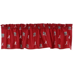 These Alabama Crimson Tide curtain valances are made and licensed by College Covers. This curtain valance includes a printed 84” X 15” valance, perfect for finishing off any room décor. These match perfectly with our 63" or 84" curtain panels, also available but not included. Our curtain valance has a 2” rod pocket and a 2” header, complete with officially licensed logos and colors. Made with 100% polyester, then printed for long-lasting color and decoration. Machine washable in cold water, tumble dry on low heat.