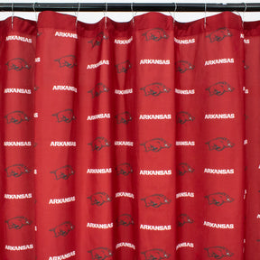 College Covers brand NCAA licensed shower curtain is made from 100% polyester, so you can use either with or without a liner, since it's easy to wash. The shower curtain measures 72 inches wide by 70 inches long and is printed in an all over pattern with a bright and vibrant team color background. 12 buttonholes across the top make it easy to put up and take down with any style curtain rings (not included). This also matches College Covers brand curtain panels and valances. Machine wash in cold water with like colors and tumble dry on a low heat. Imported.