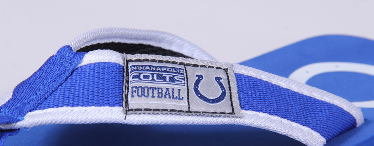 Support your Indianapolis Colts with these unisex Contour Flip Flops. These flip flops come in Blue and White team colors and include a Dark blue horseshoe team logo. Makes the perfect gift!