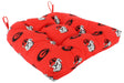 Our NCAA licensed patio D cushion is a great addition to any patio or fan cave bar chairs. The cushions are made with UV treated polyester to resist stains, mildew, weather, and fading in sunlight. Works great for both indoor or outdoor use. Seat cushions are filled with a 100-percent polyester fiber sourced from North Carolina and filled right here in Nebraska. Attached ties keep the D cushion securely tied to your chair or patio furniture, circle tacked to eliminate bunching of filling for a perfectly comfortable seat. Lightly spot clean or hand wash with a mild detergent and cool water, allow to air dry. Measures 20-inches long x 20-inches wide x 3-inches high.