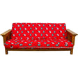 College Covers brand NCAA licensed futon covers are a great addition to any dorm, game, or fan room futon. Made with 100% polyester, they are durable and machine washable. Machine wash in cold water with like colors and tumble dry on a low heat. These futon covers will fit up to an 8" futon mattress. Measurements are: 54 in x 76 in x 6 in. Imported.