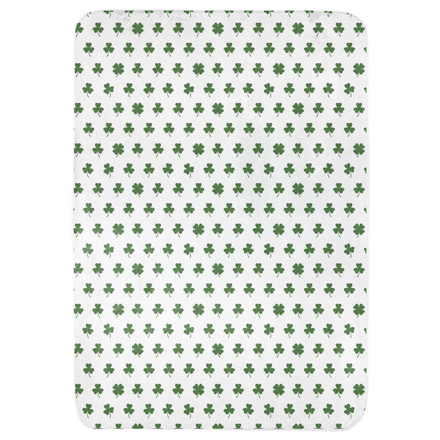 White and green distressed clover pattern St. Patrick's Day throw blanket. Available in 2 sizes: 30" x 40" or 42" x 60". The 30 inch by 40 inch is a great blanket size for a toddler or younger child. Lightweight and easy to carry around, wherever they go. The 42 inch by 60 inch blanket is a great chair or couch blanket. The size is perfect for 1 person, and it isn't so heavy that it will make you sweat. Everything Comfy brand throw blankets are sublimation printed on a raschel knit blanket for a soft and luxurious feel. Blankets are made of 100% polyester and are machine washable. Great for decoration or relaxing by the TV, camping, picnics, and more. Printed and finished here in USA from an imported blanket.