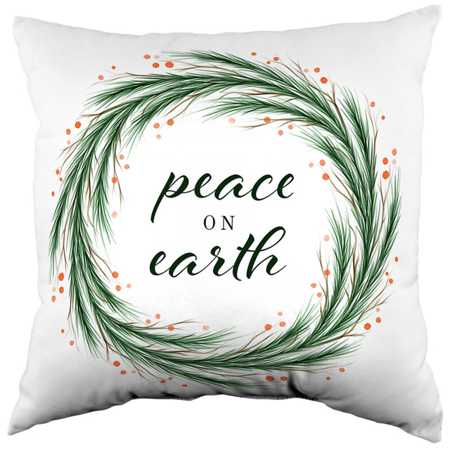 "Peace on Earth" script surrounded by an illustrated wreath, printed on both sides.
