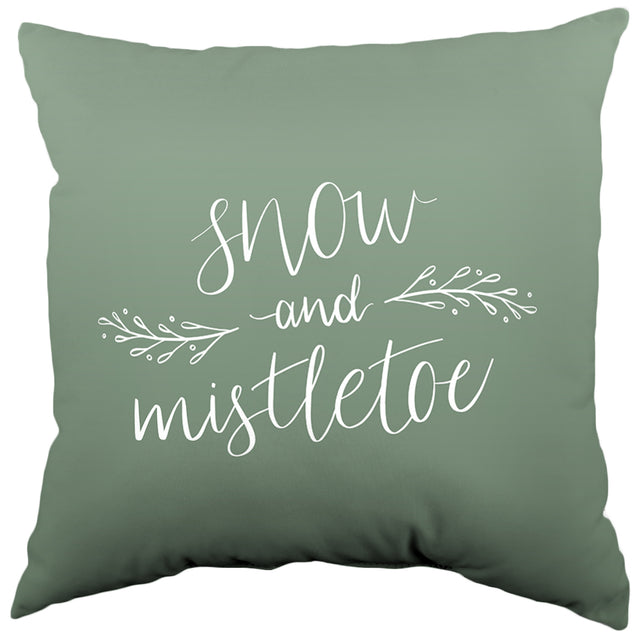 Snow & Mistletoe Decorative Pillow, 2 Sizes, Made in the USA - 16" x 16" / Green is backordered and will ship as soon as it is back in stock.