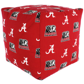 Our NCAA licensed Cube Cushion Pouf Chair Bean Bag Ottoman, pouf chair or square chair is a great addition to any patio, tailgate spot, dorm room, game room or fan cave. This cushion is made with UV treated high spun polyester, to resist stains, mildew, weather and fading in sunlight. This cushion or chair works great for any number of things: extra dorm room chair, foot rest in your patio or pool area, on the go seating while tailgating or a perfect chair in your child's game room. Our Cube Cushion Pouf Chair Bean Bag Ottoman or square chair is filled with a 100-percent recycled polystyrene beads sourced from South Dakota and stuffed and finished right here in Nebraska. Lightly spot clean or hand wash with a mild detergent and cool water, allow to air dry. Measures 18-inches long x 18-inches wide x 18-inches high.