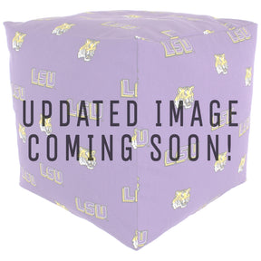 Our NCAA licensed Cube Cushion Pouf Chair Bean Bag Ottoman, pouf chair or square chair is a great addition to any patio, tailgate spot, dorm room, game room or fan cave. This cushion is made with UV treated high spun polyester, to resist stains, mildew, weather and fading in sunlight. This cushion or chair works great for any number of things: extra dorm room chair, foot rest in your patio or pool area, on the go seating while tailgating or a perfect chair in your child's game room. Our Cube Cushion Pouf Chair Bean Bag Ottoman or square chair is filled with a 100-percent recycled polystyrene beads sourced from South Dakota and stuffed and finished right here in Nebraska. Lightly spot clean or hand wash with a mild detergent and cool water, allow to air dry. Measures 18-inches long x 18-inches wide x 18-inches high.
