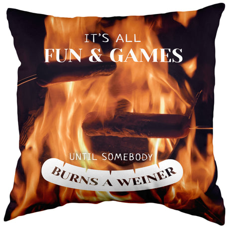It's All Fun & Games Until Somebody Burns a Weiner Decorative Pillow, 16" x 16", Made in the USA
