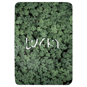 "Lucky" clover patch St. Patrick's Day throw blanket. Available in 2 sizes: 30" x 40" or 42" x 60". The 30 inch by 40 inch is a great blanket size for a toddler or younger child. Lightweight and easy to carry around, wherever they go. The 42 inch by 60 inch blanket is a great chair or couch blanket. The size is perfect for 1 person, and it isn't so heavy that it will make you sweat. Everything Comfy brand throw blankets are sublimation printed on a raschel knit blanket for a soft and luxurious feel. Blankets are made of 100% polyester and are machine washable. Great for decoration or relaxing by the TV, camping, picnics, and more. Printed and finished here in USA from an imported blanket.
