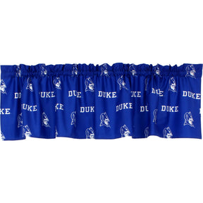 These Duke Blue Devils curtain valances are made and licensed by College Covers. This curtain valance includes a printed 84” X 15” valance, perfect for finishing off any room décor. These match perfectly to our 63" or 84" curtain panels, also available but not included. Our curtain valance has a 2” rod pocket and a 2” header complete with officially licensed logos and colors. Made with 100% polyester, then printed for long lasting color and decoration. Machine washable in cold water, tumble dry on low heat.