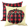 Red plaid pumpkin against a pale yellow background with a contrasting plaid background! This 16" decorative pillow is a great fall décor piece. Made in the USA.